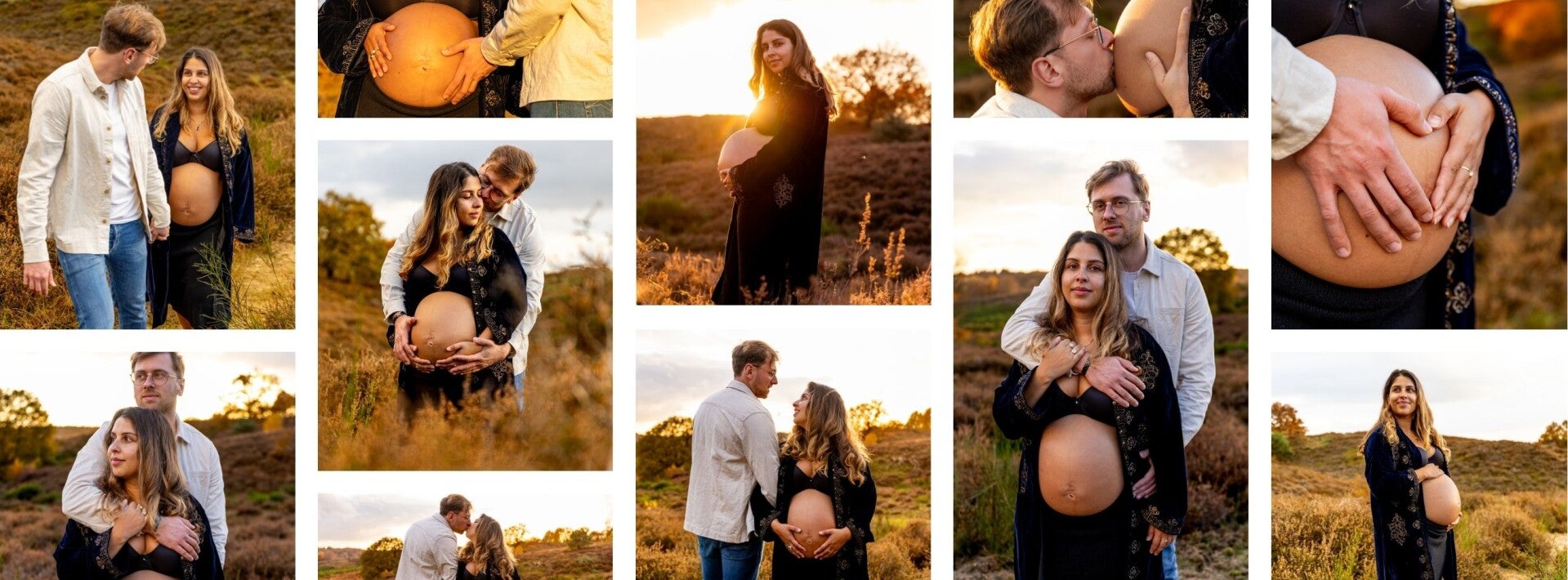 Ik laat de zwangerschapsshoot altijd plaats vinden tijdens golden hour. Zo krijgt jullie verhaal een extra gouden randje met een magisch gevoel om naar terug te kijken. Dit moment van de dag is mijn favoriet omdat het licht In overleg kunnen we samen kijken wat een geschikte buitenlocatie voor jullie is. Daarnaast mag je mij vooraf de shoot foto's doorsturen die jou echt aanspreken, zo weet ik als fotograaf welke poses jullie aantrekken.